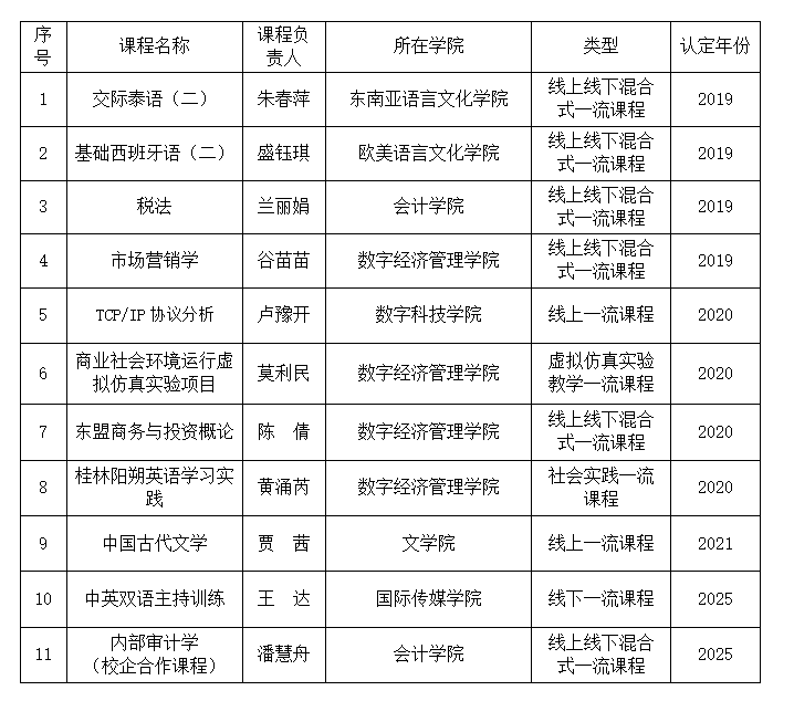 2025年11月6日,教育厅公布了第四批自治区级一流本科课程名单,我校的《中英双语主持训练》线下课程、《内部审计学(校企合作课程)》线上线下混合式课程等两门课程被认定为第四批自治区级一流本科课程。截止目前,学校共有11门自治区级一流本科课程。
