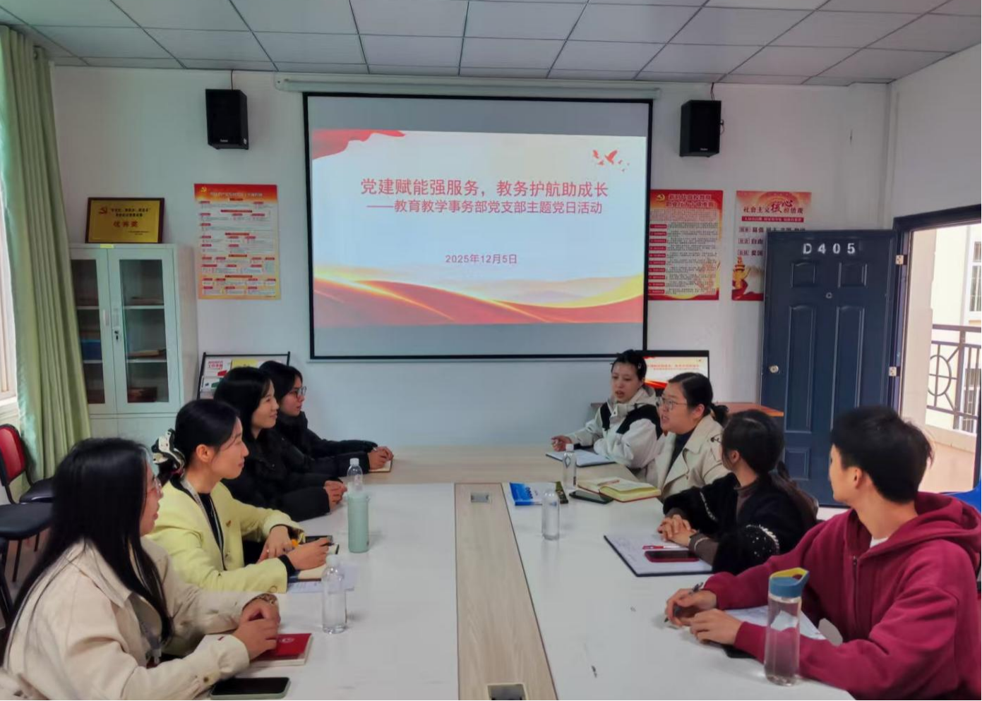 为深入推进党建与业务工作深度融合,践行“以学生为中心”的服务理念,12月5日下午,教育教学事务部党支部走进数字科技学院,开展“党建赋能强服务,教务护航助成长”的主题党日活动。本次活动,教育教学事务部党支部的教师党员,面向学生代表开展精准政策辅导,围绕从课程修读到毕业审核全过程中的常见问题,提供系统化解读与面对面答疑,切实助力学生扫除学业政策盲区。