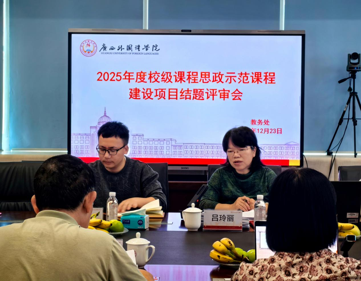 为深入推进课程思政建设,检验示范课程建设成效,完善“三全育人”育人体系,2025年12月23日下午,学校在图书馆五楼会议室召开2025年度课程思政示范课程建设项目结题评审会。学校执行校长吕玲丽、评审专家团队及教务处相关人员出席评审会,评审会由教务处副处长杨湘文主持。